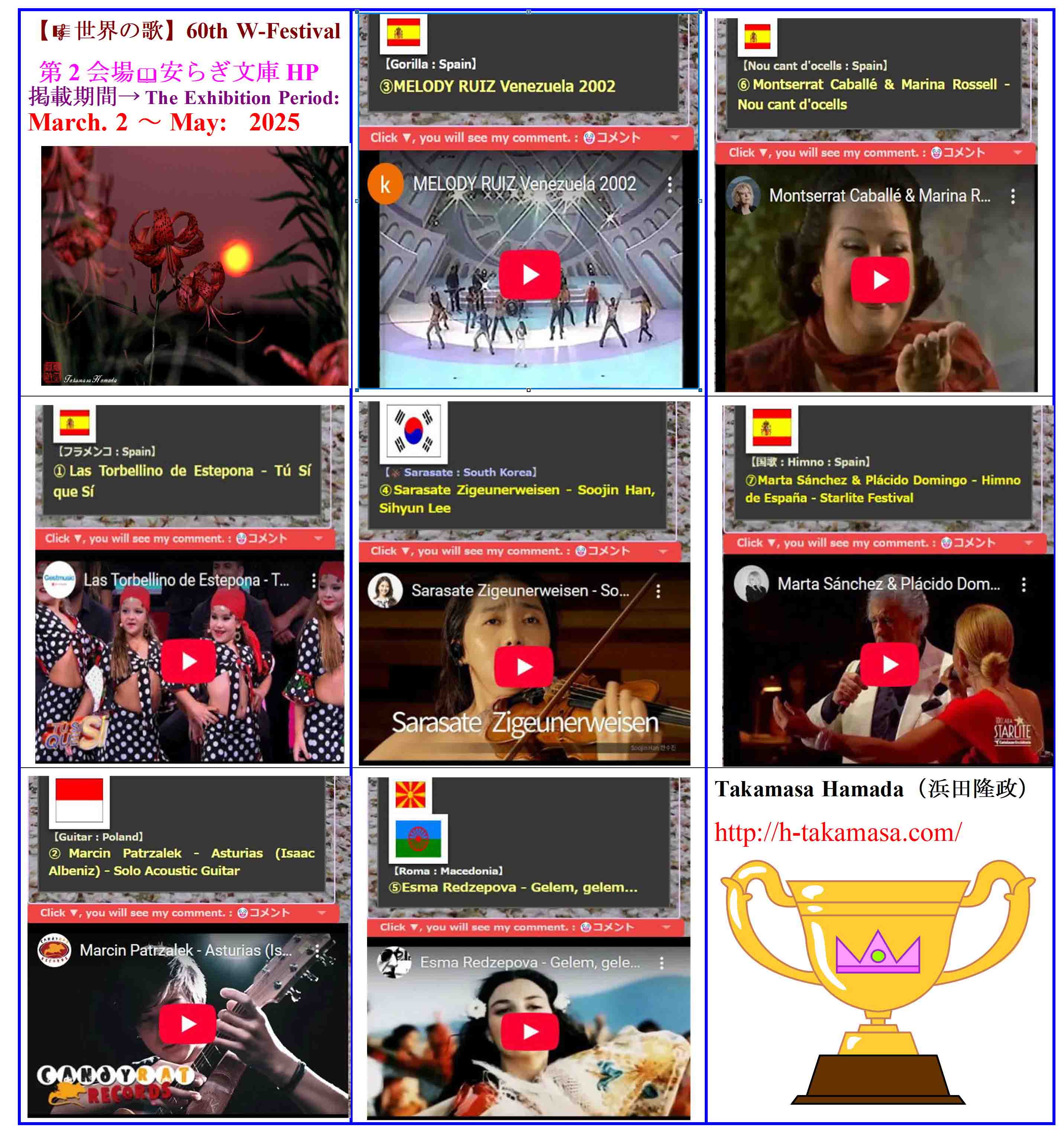 - 💁:下記バーの中の▼をクリックすれば「🎼世界の歌」正式案内版が出ます
