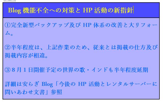 ③(安らぎHP)世界の歌祭典7/14~:(安らぎBlog)必要に応じてインド開催遅延中