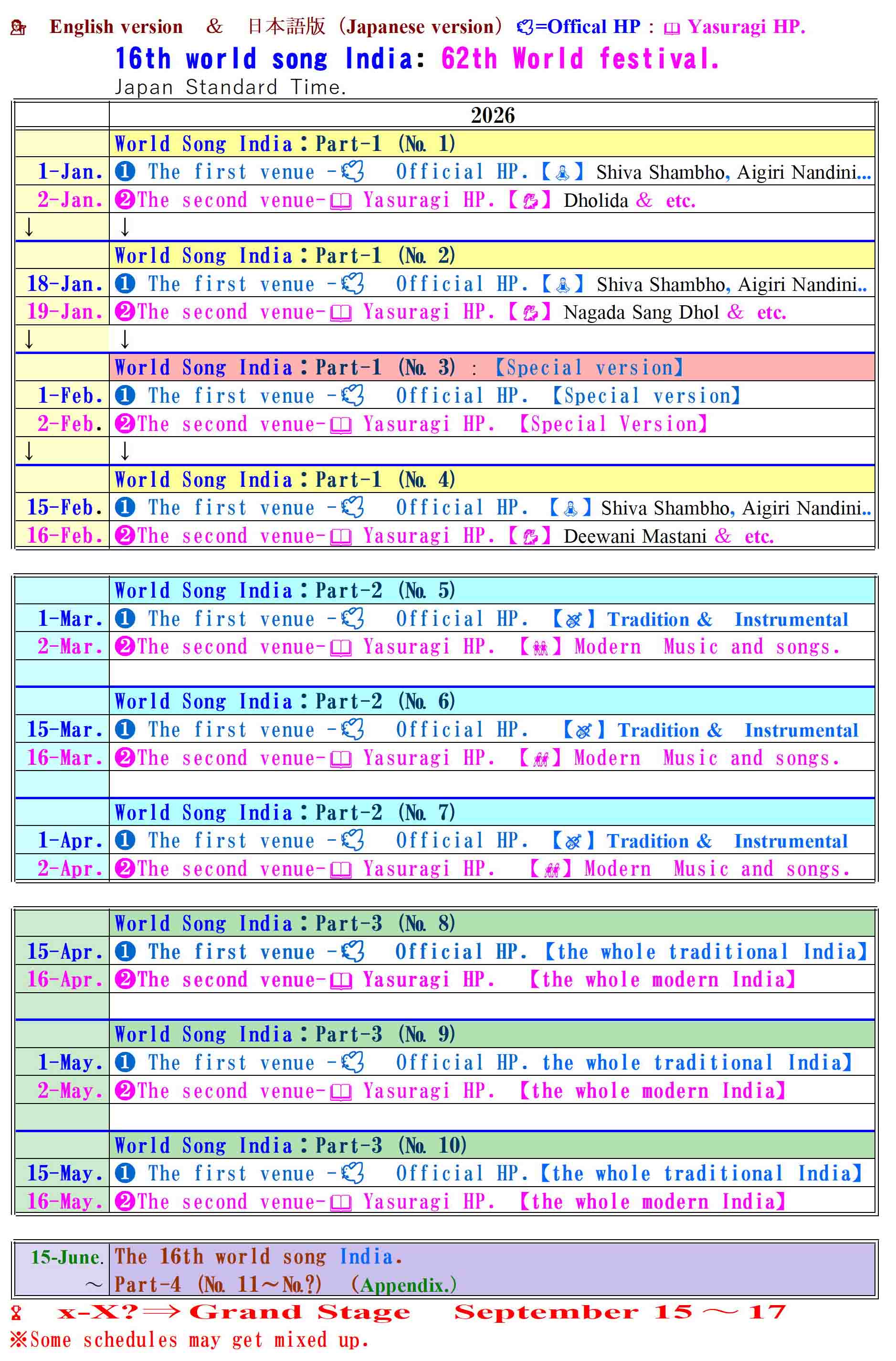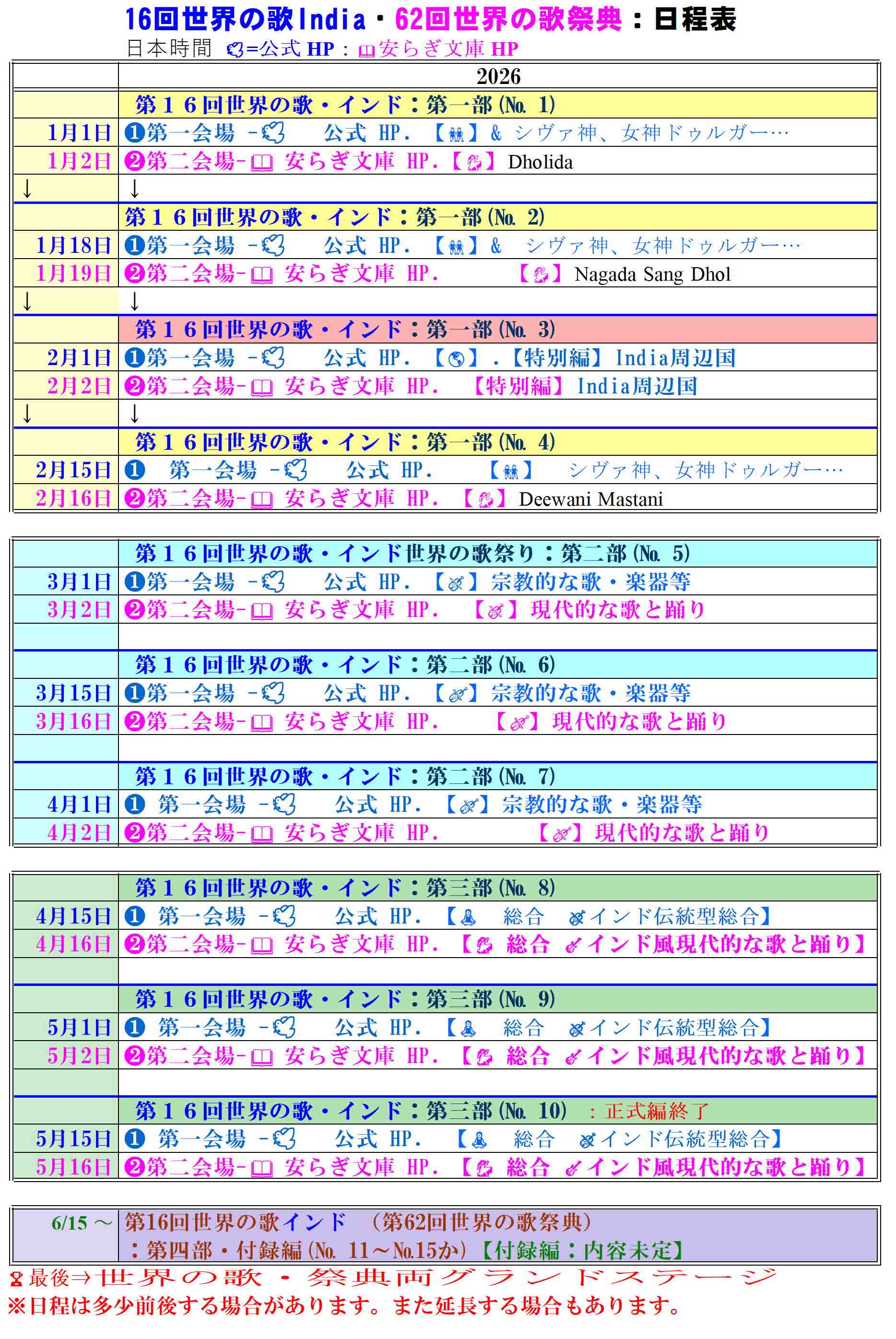 • 「第16回世界の歌」インドの日程案
