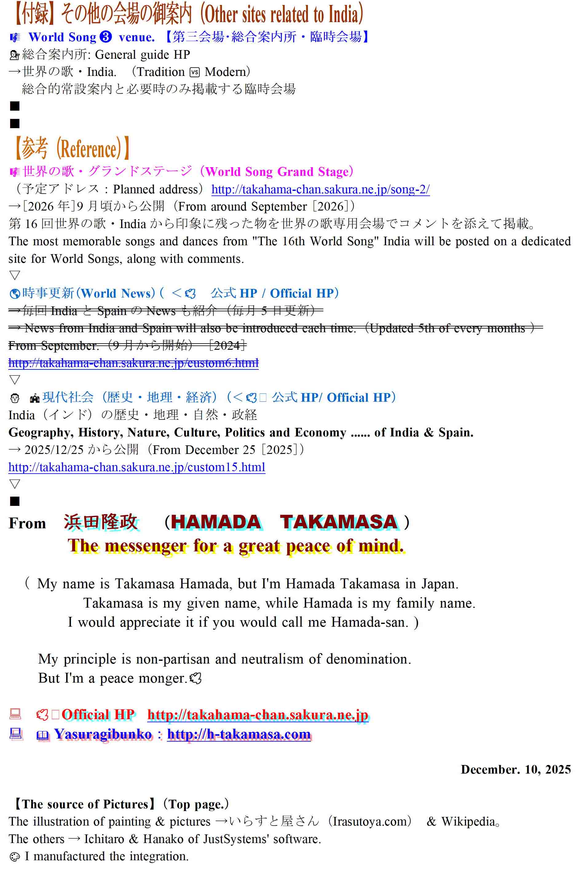 (安らぎHP)世界の歌祭典7/14~:(安らぎBlog)必要に応じて  インド開催遅延中